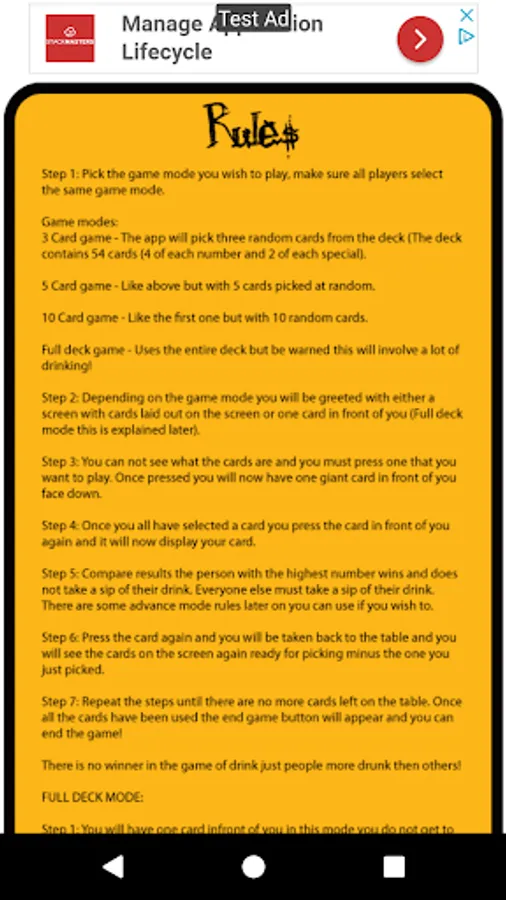 In the 3,5 or 10 card game mode each player will see face down cards on their screen. Each player selects which card they want to use (you have no idea what card it is). Once each player as selected a card you all press the big card in front of you to reveal your card! The highest card is the winner and everyone else must take a sip of their drink!