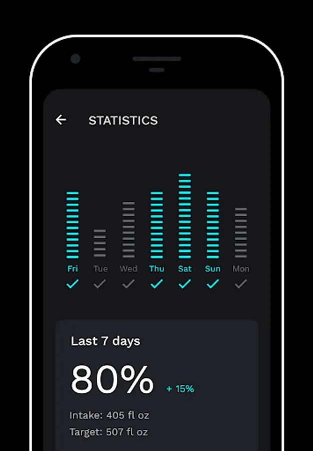◼ Get insights into your water drinking habits and water balance with weekly and monthly statistics