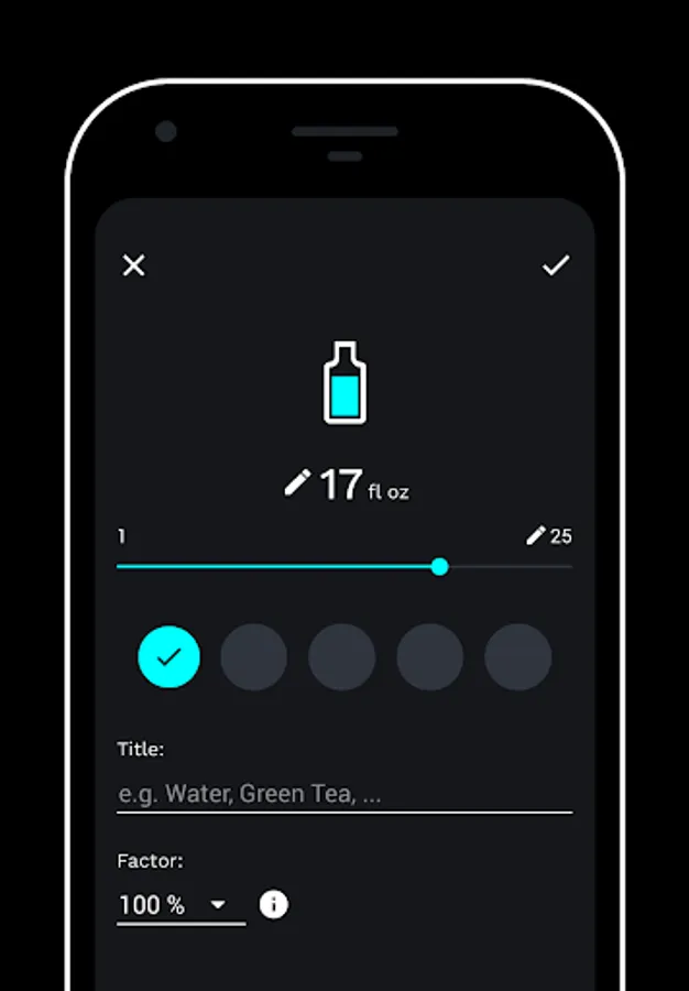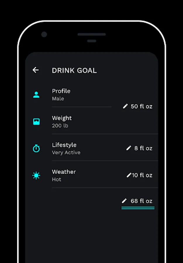 ◼ Calculate your personal drink goal in four easy steps or set your own drink goal
