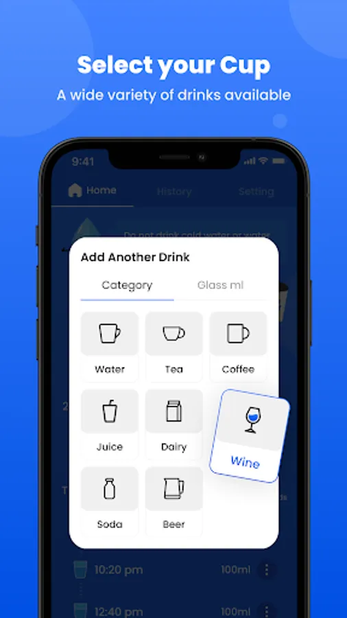We understand that everyone has their preferred beverages, so our water minder lets you log different types of drinks - from plain water and herbal tea to infused water and coconut water. This flexibility allows you to keep track of your hydration, no matter what you choose to sip on.