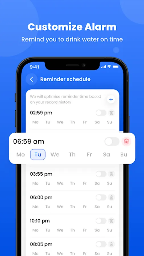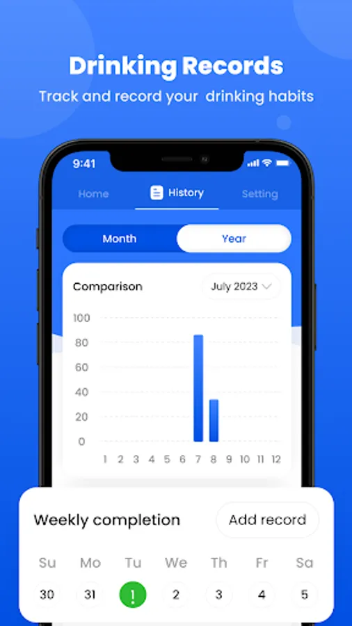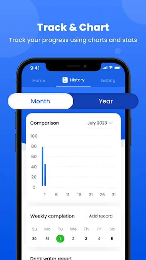Our App offers detailed statistics and insights into your hydration patterns. You can view daily, weekly, and monthly summaries of your water eject, allowing you to identify trends, water track progress, and make adjustments as needed. The water reminder app provides a graphical representation of your consumption history, making it easy to visualize your hydration journey.