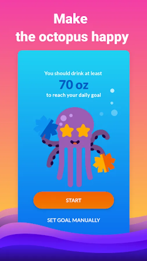 Water app with cute little octopus! Our water tracker has a hydro coach that will be your company in building a healthy h2o drinking habit.