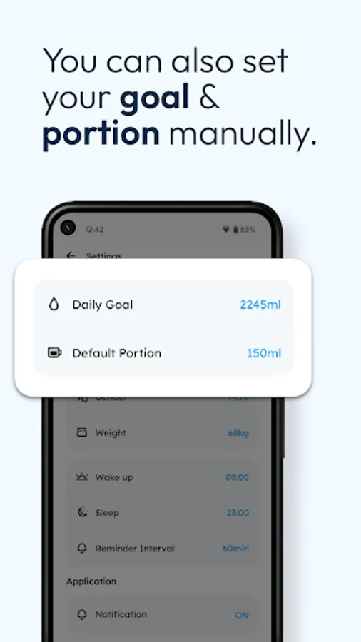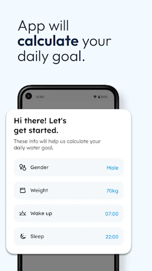 You can set your water tracker app in less than a minute just by adding your age, gender, and weight.