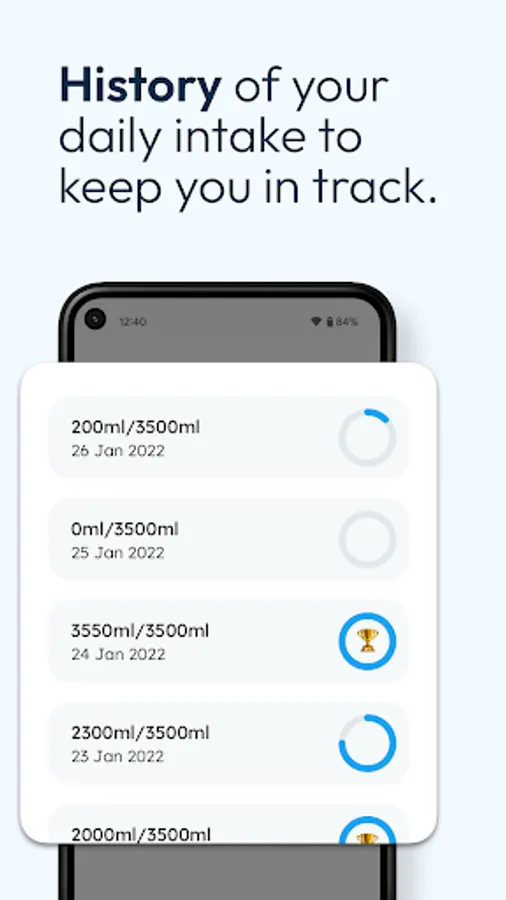 It is hard to track water intake during a busy schedule, but donβt worry, our app will do this for you just by reminding you to drink water on time and sharing your total water intake for the day at the end of the day.