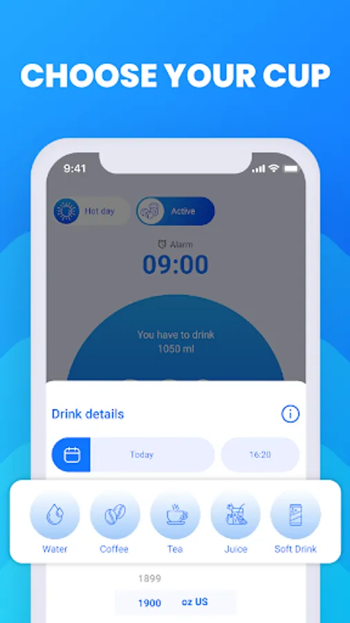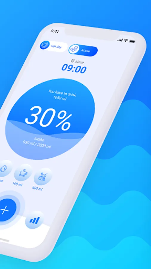 Soft sounds of drink water reminder will remind you to drink. It’s time to drink with a drink water tracker!