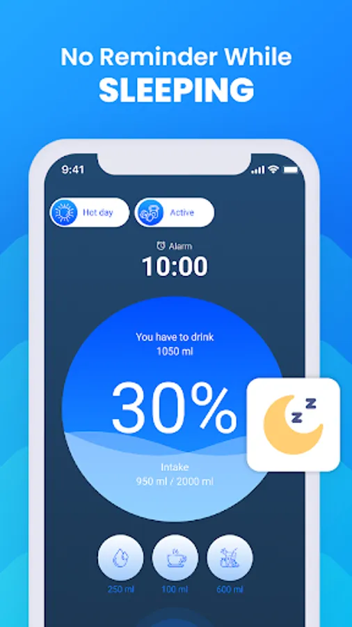 With the drinking water, you will receive water tracker reminders out of your sleep times. Drink Water - Reminder reminds you to drink and generally creates your water tracker habit.