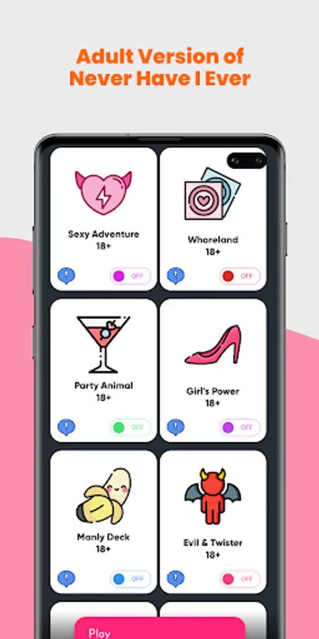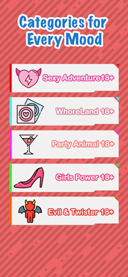 Do you want to make things more exciting? With the Dirty Never Have I Ever game for adults, things just got a bit more crazy! It’s the must have app for friends, couples and family! Tons of Dirty Never Have I Ever questions to test your steel!