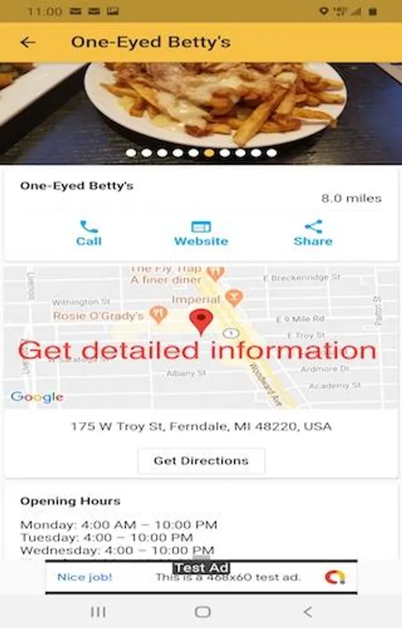 Users will get full details of the restaurants in their search including hours of operation, customer reviews, pictures of popular dishes and drinks, as well as the option to view the restaurant's website for detailed menu options.