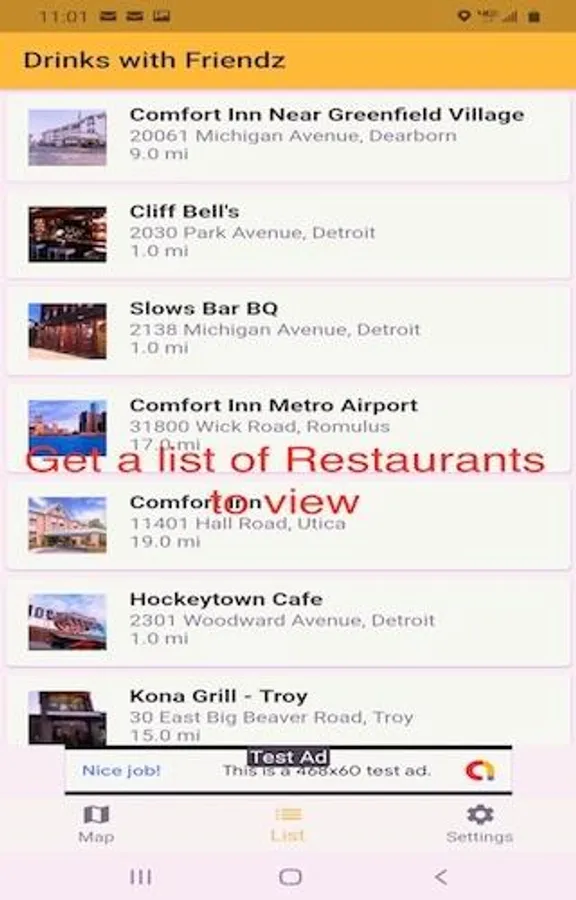 Users of the mobile app will be able to view a list of restaurants, bars and cafes in the area based on their location and preferences.
