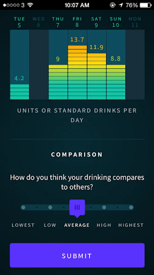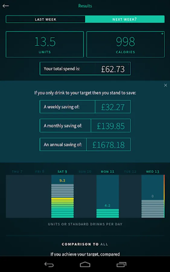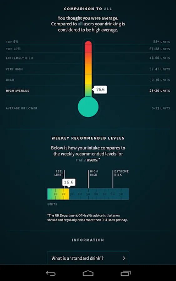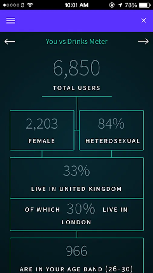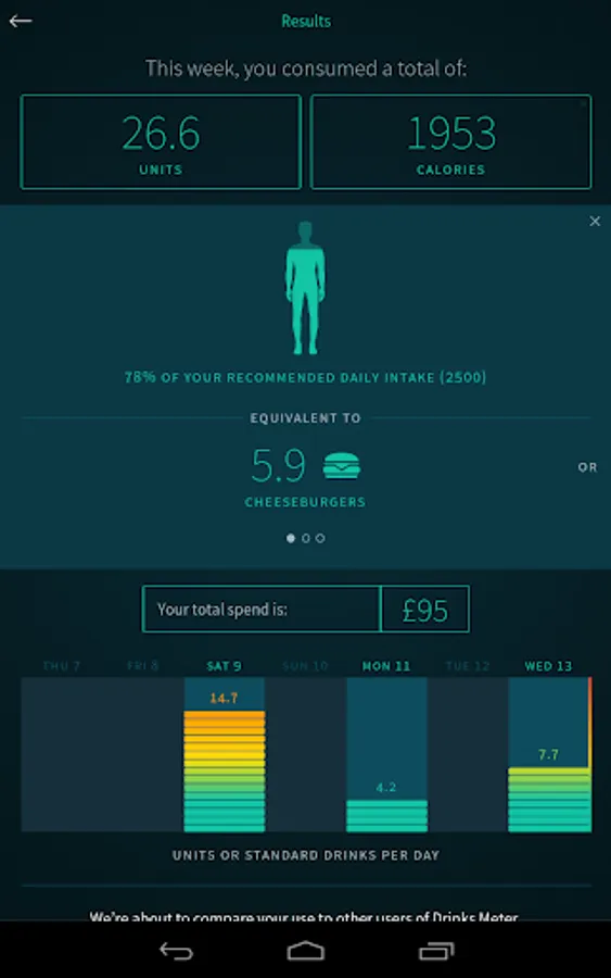 • Comparison to over 6,000 other people’s anonymous drinking habits worldwide