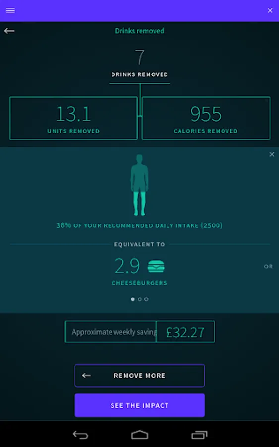 • Potential health, alcoholic unit, calorie and financial savings if potentially unnecessary drinks are removed