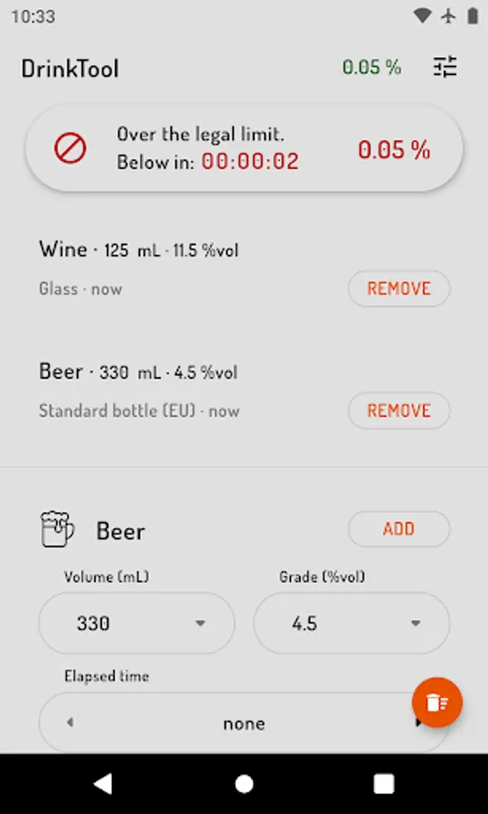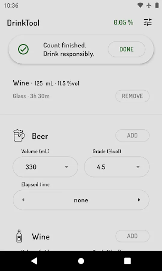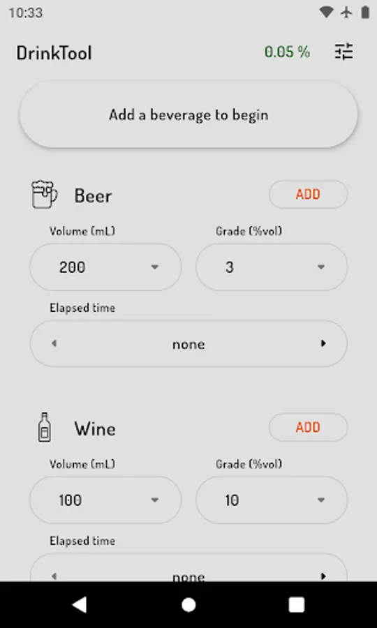 Drink Tool is intended for entertainment purposes only and is not intended as a scientific tool for determining actual blood alcohol content.