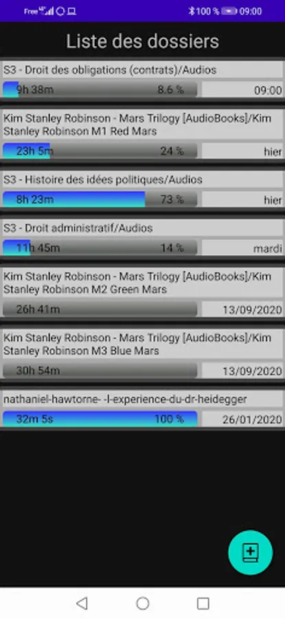 This app automatically sets up bookmarks of what you're reading and when you've read it. It allows you to follow progression with percentage.