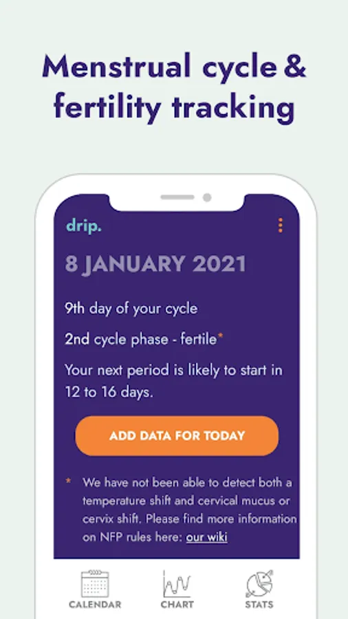 Menstrual cycle tracking can help you understand your body symptoms and gives you insights into your menstrual health. Use drip for tracking your menstrual cycle and for fertility awareness. Unlike other menstrual cycle tracking apps, drip is open-source and leaves your data on your phone, meaning you are in control.