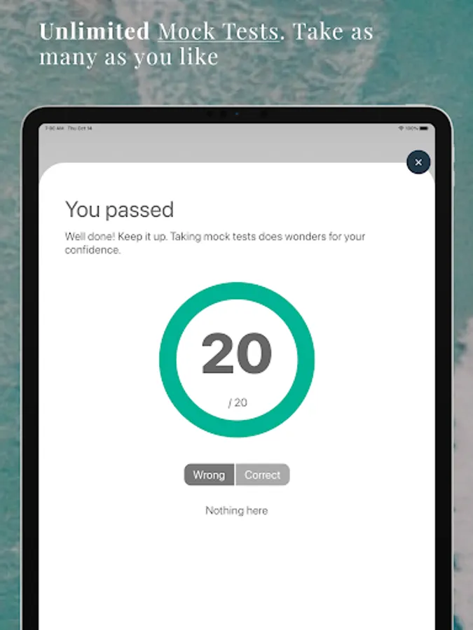 - Unlimited mock tests - Take the mock tests as many times as you like. We will track your scores. When the rings close, book the actual test!