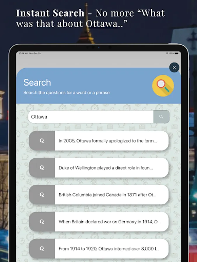 - Exclusive instant search - Type “Parliament” and get all the questions about the Parliament. No more “What was that question about...”.