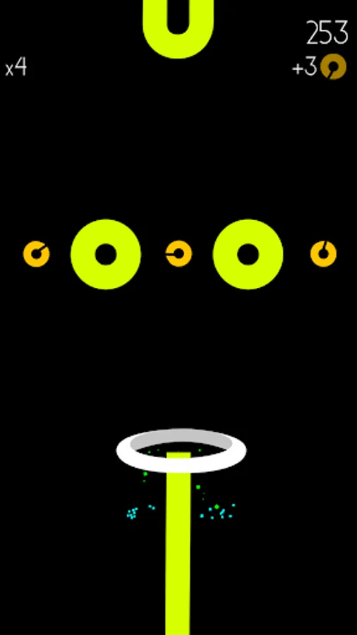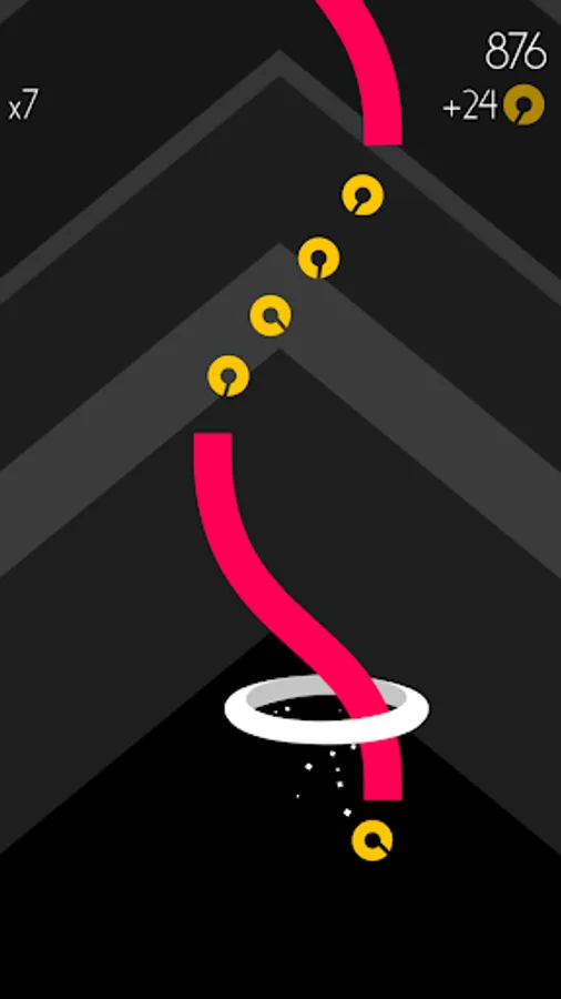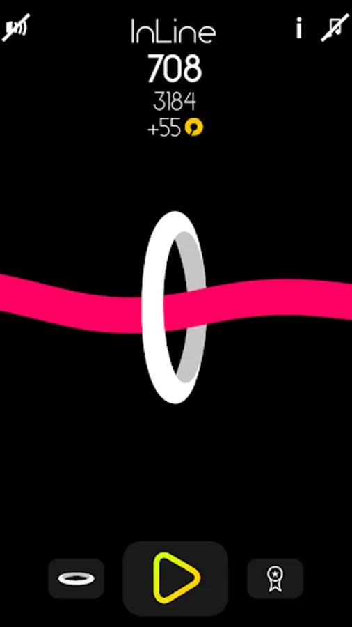 Move the ring to avoid touching the line, collect boosts and coins on your way.