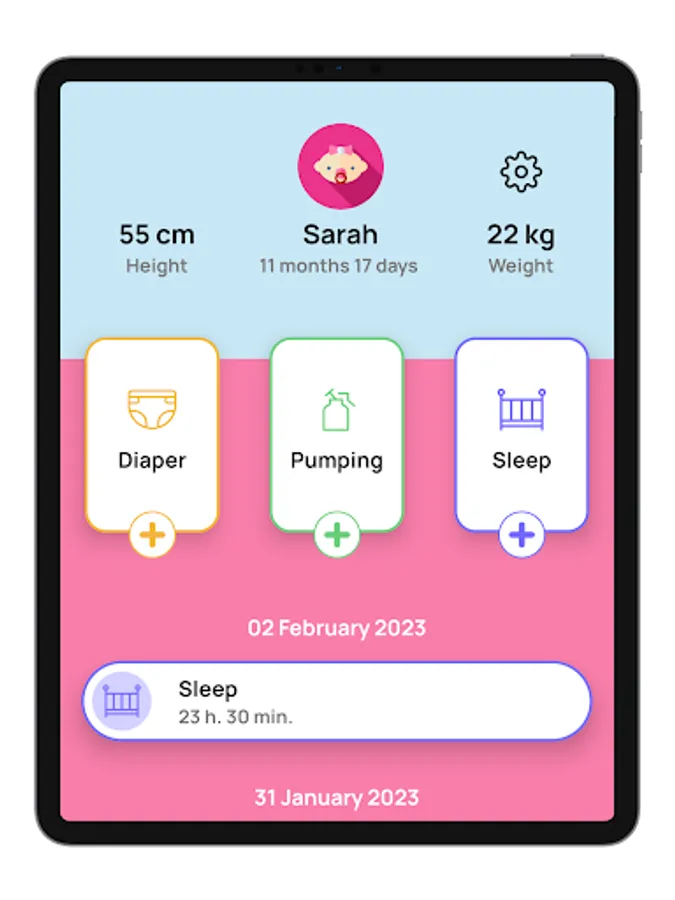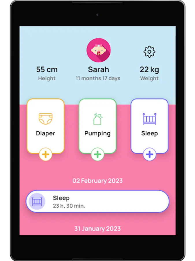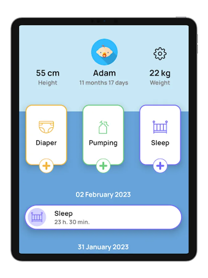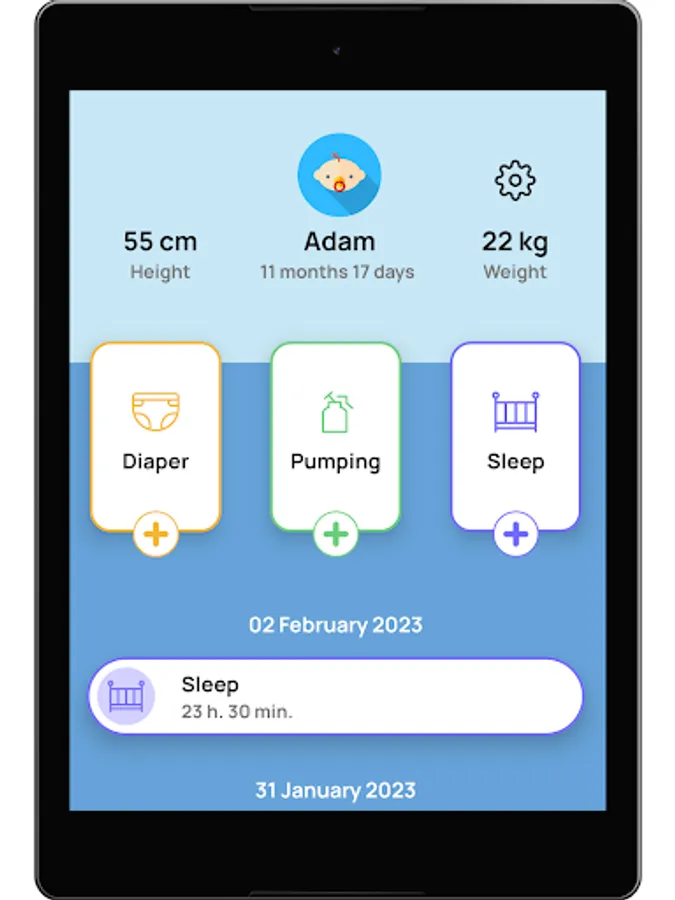 You can monitor what is going on with your little one at a glance by viewing their daily activity records or reading the details of any event. The app dashboard provides a complete overview of your baby's daily habits.