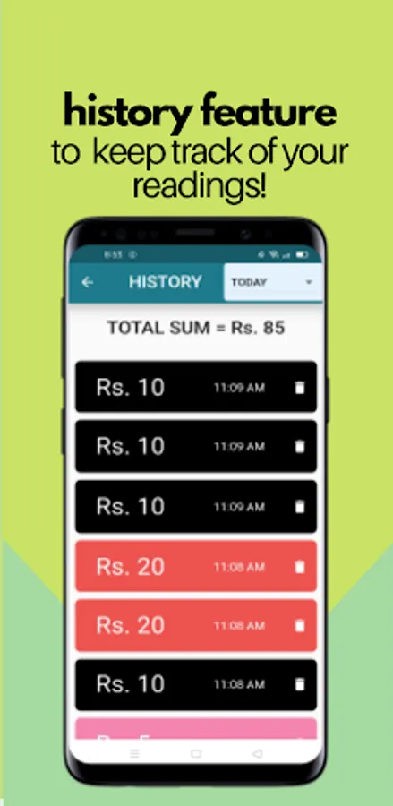 ->The history feature allows you to find out the day and the time you scanned a particular note as well as the total amount you spent on that particular day.