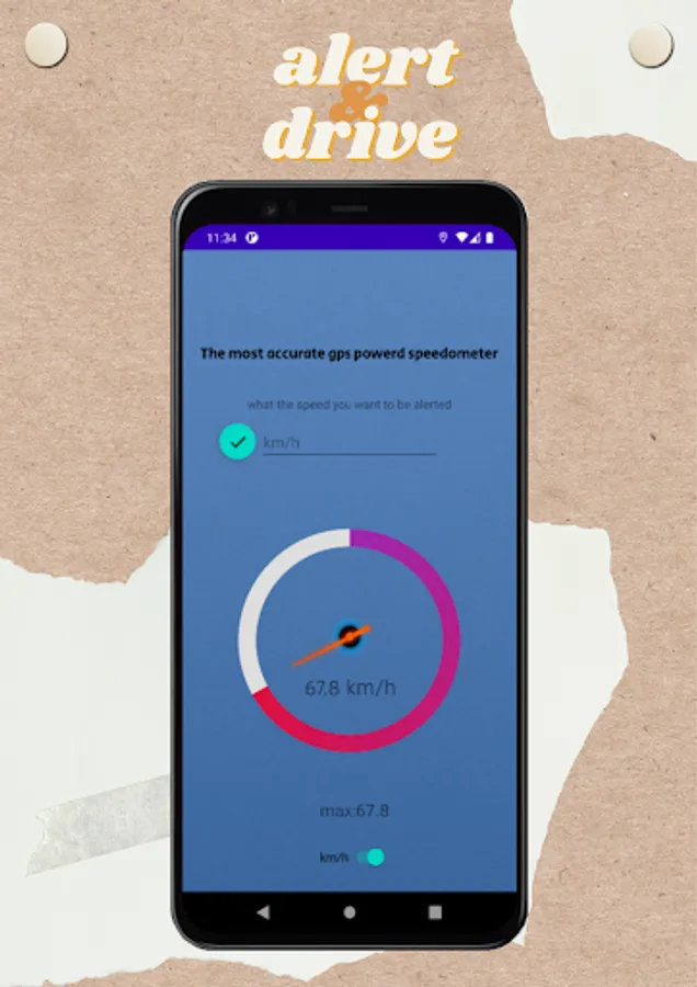 alert the driver when he's driving past the speed limit he set by vibration and notification and showing driver speed with speedomter and show max speed in our app you can use km/h and mile/h.