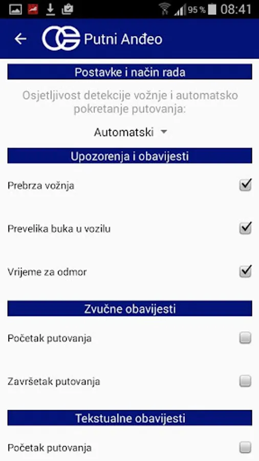 Travel Angel of your journey will warn you, in case of a long journey without rest, voice and visual message that too vozite.Osim concerns about your condition while driving, Travel Angel offers the ability to display the volume / noise in the vehicle, the status of the connection to the Internet, Gantt the duration of the trip and more, all find out through just one click to install!