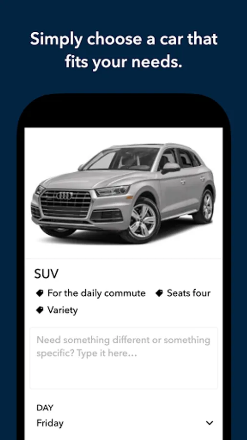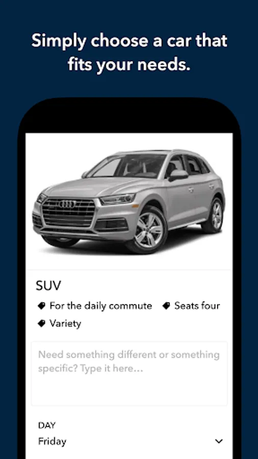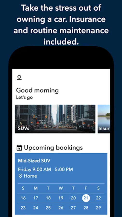 MANAGE YOUR SERVICE: Use the app to choose a vehicle to subscribe to. Book your first vehicle using the app.