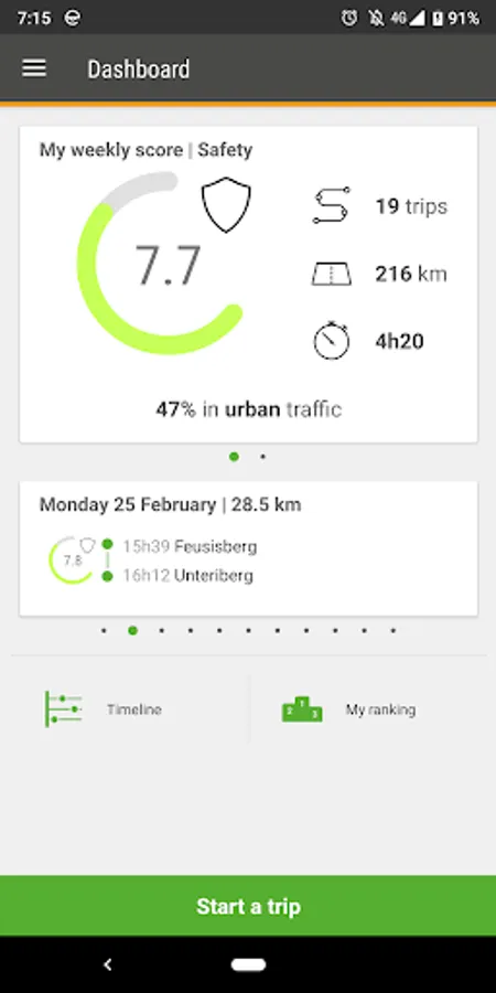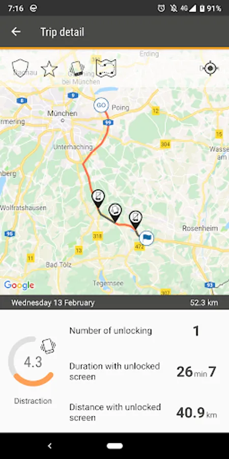 The app runs in the background and automatically detects the beginning and end of a ride. As a result, no manipulation with the smartphone must be made while driving.
