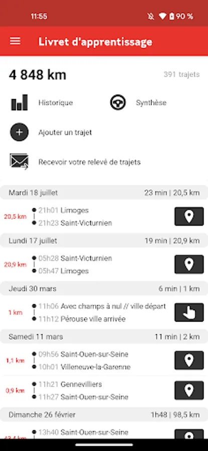 Follow your progress thanks to the digital learning booklet fed in real time. You will find in particular a summary of your distances travelled, the list of your journeys, the type of road environments taken...