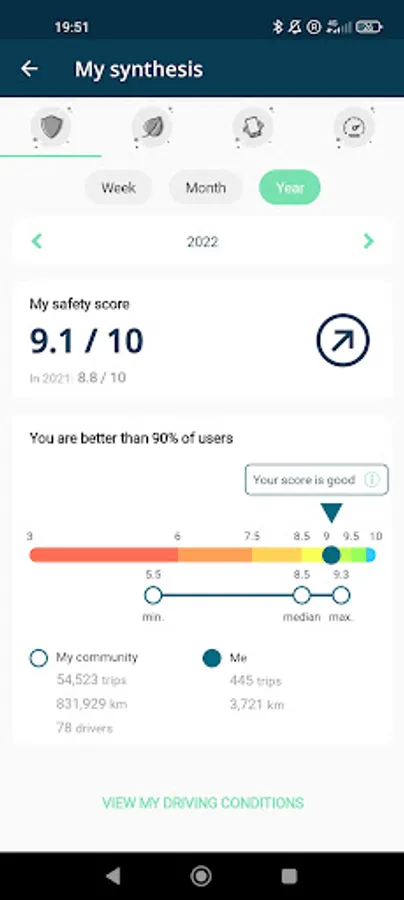 weather, road profile). Enjoy a reliable evaluation of your driving skills and a comparison with drivers
