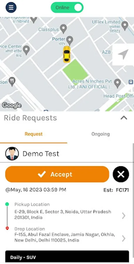 The HeJo taxi app for drivers has the advantage to be visible to all the drivers, this will be downloaded freely and it will be ready for use, the driver has the ability to accept a call from a rider, he also has the possibility to call the rider to have a live exchange on the itinerary, the driver has the choice after the ride to get cash or to be paid by mobile money, the driver will have to validate the ride afet the he has dropped the rider off in order for him to use the app again