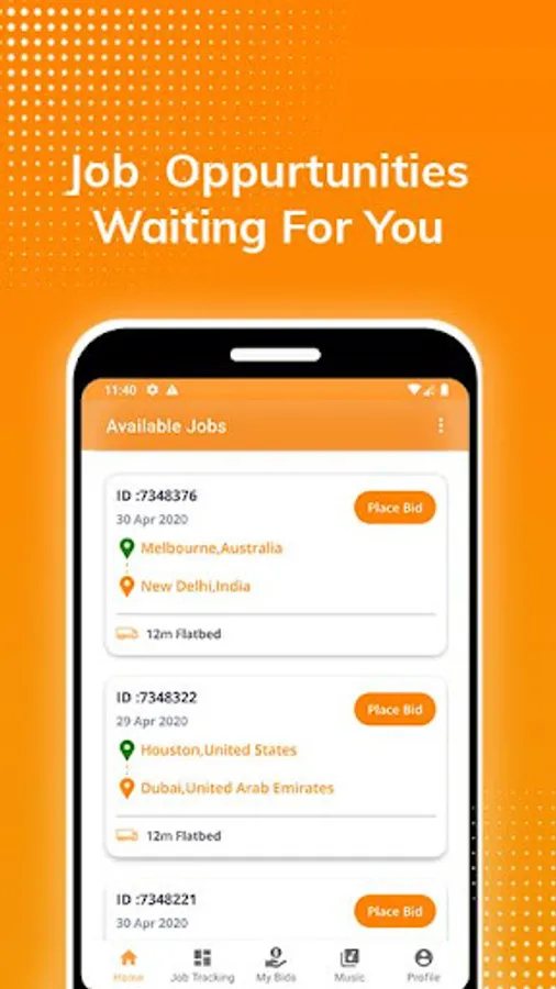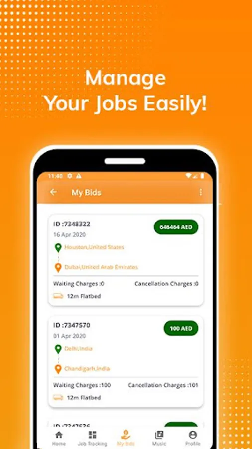 4. Apply bid: Send your own bids on jobs to ensure correct trip fairs.