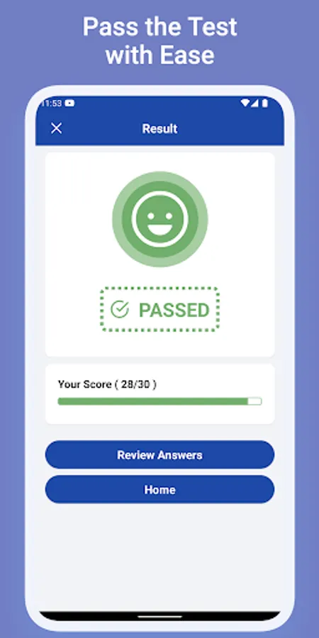 You will get the test result based on the official criteria to pass the Driver’s License Test. You will also be able to find out what questions you've done wrong after taking the test.