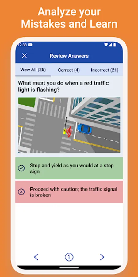 You will get the test result based on the official criteria to pass the Driver’s License Test. You will also be able to find out what questions you've done wrong after taking the test.