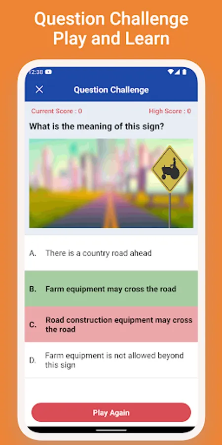 This is a unique feature of our application. It allows you learn while playing a challenge game. Your score will go up by one point each time you correctly answer a question up until the point where you get it wrong. It keeps record of your high score.