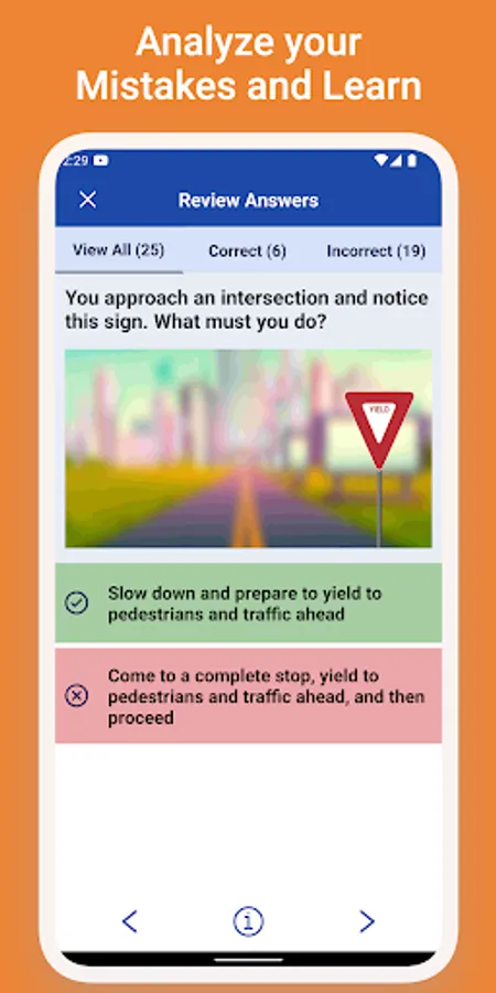 You will get the test result based on the official criteria to pass the Driver’s License Test. You will also be able to find out what questions you've done wrong after taking the test.