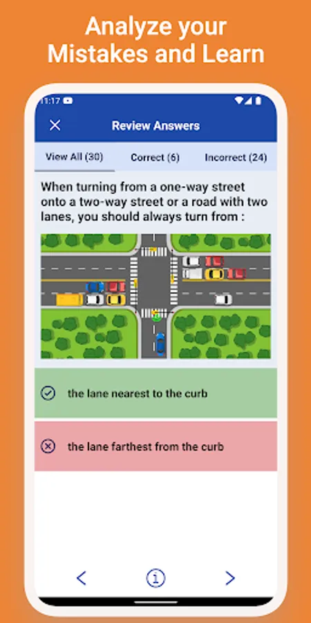 You will get the test result based on the official criteria to pass the Driver’s License Test. You will also be able to find out what questions you've done wrong after taking the test.