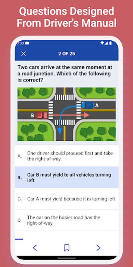 The app includes a practice module that allows to get familiar with questions that fall under different categories like Traffic Rules, Road Signs and Rules of Safe driving. It also keeps track of the progress you have made in each category. It contains questions from following categories: