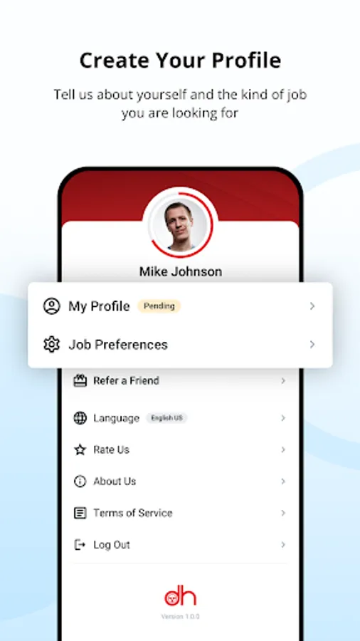 1. Create Your Profile: Tell us about yourself and the kind of job you are looking for