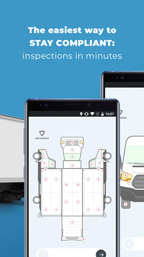Driveroo fleet technology is grounded in inspection. Forget pen and paper: all inspections are fully mobile and digital, which means less logistics, online records, and inspection times up 10x faster. Daily fleet inspections (eDVIR’s) are taken on driver phones or mobile devices: drivers simply tap on vehicle diagrams to inspect and add comments. Our intuitive Turbographics™ technology requires little training time and reduces error. With new features such as voice-to-text and unlimited pictures, inspections are as detailed as possible, identifying issues and reducing the chances of error. Inspections are powered by AI technology to proactively assess common repairs. Driveroo makes fleet inspections easy and painless.