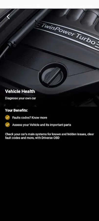 OBD vehicle diagnosis app. Reads faults from OBD of your vehicle and gives you details of issues, of any.