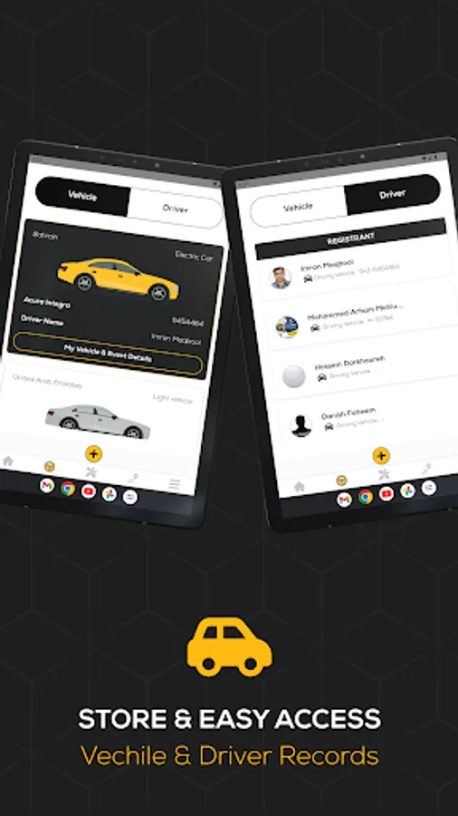 Vehicle & Driver Details: Instantly access crucial details about your vehicle and driver, and easily share them on WhatsApp. Bid farewell to the hassle of searching for your Mulkiya, license, or warranty documents.