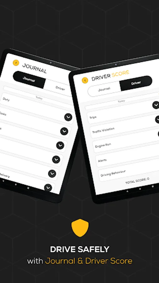 Driver Score: Review journal entries and driver score, provided a GPS device is fitted.