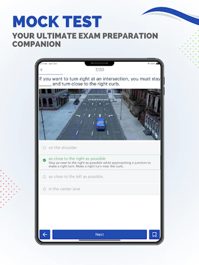 The App is designed to feel actual dmv look and feel for great experience. Try as much as possible of mock tests. Also, you can bookmark the questions for later reference.