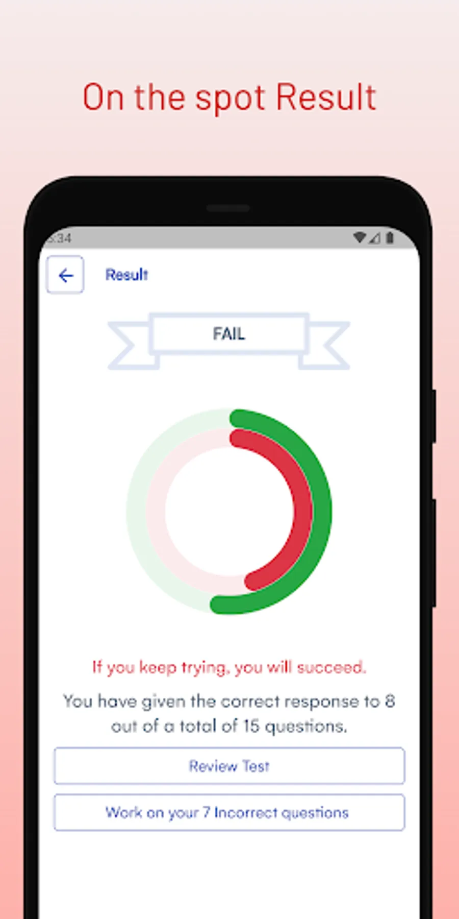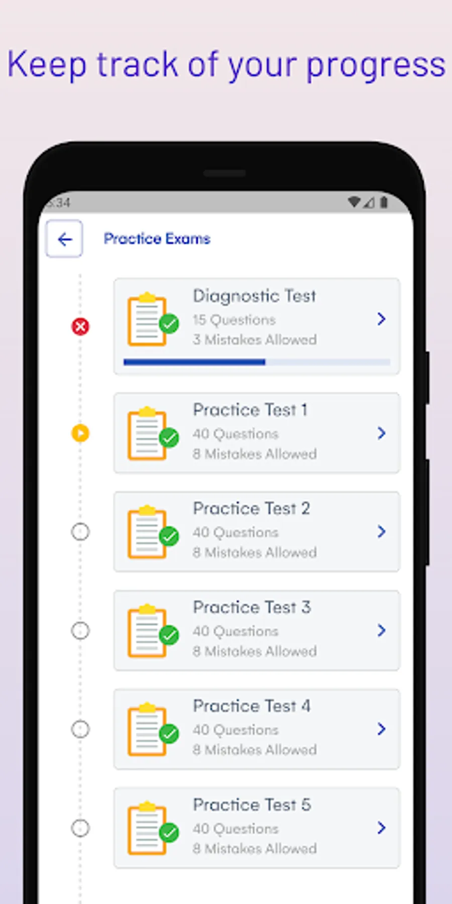 - You can track how many questions you have done correctly, incorrectly, and get a final passing or failing score based on official passing grades
