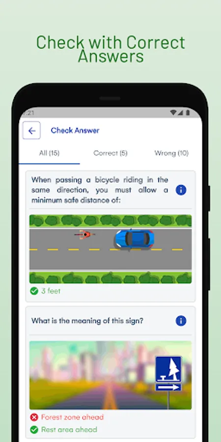 This app is a great tool for self-study and test preparation and is intended to help users get ready for the Department of Motor Vehicles (DMV) permit exam. It is not affiliated with or endorsed by any official body or government organization, nor is it associated with or endorsed by any name, test, certification, or trademark. This app's content is intended only for instructional purposes; official DMV materials or expert advice should not be substituted.