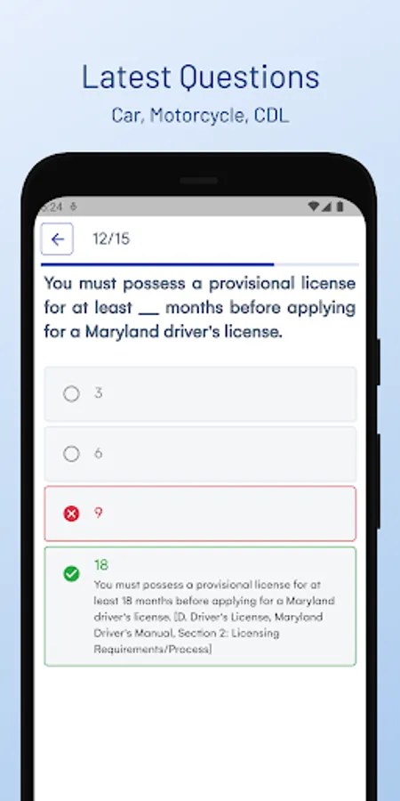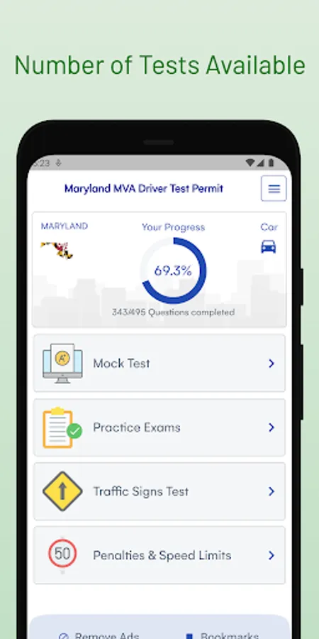 Our Maryland MD Driver Test Permit app , is easy to use and accessible from anywhere, on any device. You can practice on your phone, tablet, at home or on the go. And with our free and unlimited tests, you can practice as many times as you need to feel comfortable and confident for the real DMV Written test .