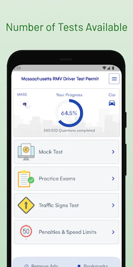 Our Massachusetts MA Driver Test Permit app , is easy to use and accessible from anywhere, on any device. You can practice on your phone, tablet, at home or on the go. And with our free and unlimited tests, you can practice as many times as you need to feel comfortable and confident for the real DMV Written test .