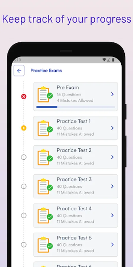- You can track how many questions you have done correctly, incorrectly, and get a final passing or failing score based on official passing grades