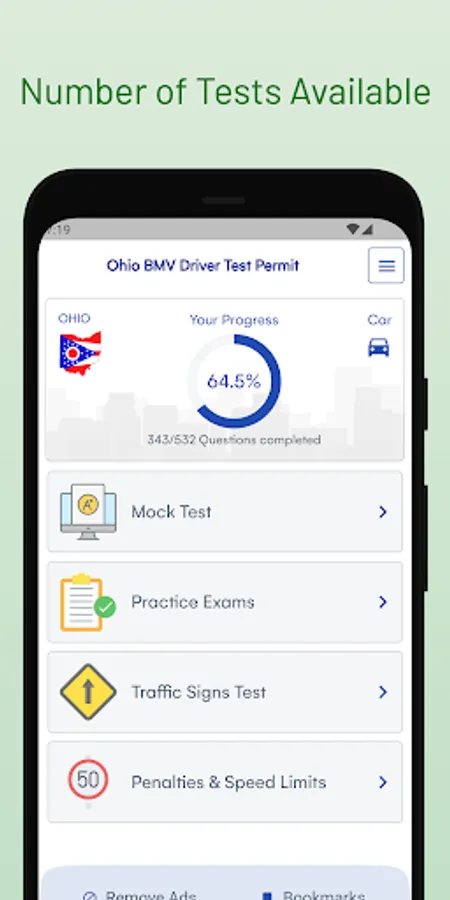 Our Ohio OH Driver Test Permit app , is easy to use and accessible from anywhere, on any device. You can practice on your phone, tablet, at home or on the go. And with our free and unlimited tests, you can practice as many times as you need to feel comfortable and confident for the real DMV Written test .