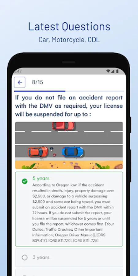 Our Oregon OR Driver Test Permit app , is easy to use and accessible from anywhere, on any device. You can practice on your phone, tablet, at home or on the go. And with our free and unlimited tests, you can practice as many times as you need to feel comfortable and confident for the real DMV Written test .